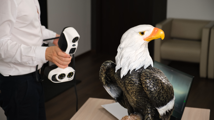 Сканеры с лазерной маской используют лазер для подсветки геометрии объекта. Не сканируют в цвете, работают только с маркерами, обладают большей повторяемостью и воспроизводимостью измерений относительно ручных сканеров структурированного света. Так же при работе с маркерами быстрее происходит обработка данных, полученных от устройства. По координатам меток, софт очень быстро сопоставляет собранные кадры и отсекает лишнюю информацию. Как правило данные сканеры — это метрологические устройства, они не обладают возможностью сшивки по геометрии, и сшивки по текстурам. Сшивку деталей по геометрии можно осуществлять в последствии, после сканирования, используя возможности программного обеспечения.