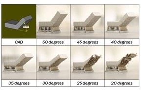 Хотя свободы выбора формы изделия является преимуществом SLM технологии, у неё всё-таки есть некоторые ограничения. Самое известное связано с формированием нависающих поверхностей, таких, как стенки с отрицательным уклоном менее 45 градусов от горизонтали (см Рис. 5). В общем случае они требуют формирования специальных поддерживающих структур, которые нужно удалять при постобработке.