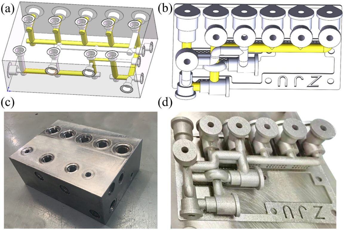 Главное преимущество SLM технологии при производстве гидравлического оборудования – возможность производить изделия почти любой формы (некоторые ограничения рассмотрены ниже). Благодаря этому в изделии можно прокладывать каналы по любым траекториям, исходя из требований гидравлических расчётов, а не возможностей сверлильного/фрезеровального оборудования. Кроме того, сложное изделие, которое при традиционном производстве приходится собирать из нескольких компонентов из-за ограничений традиционных технологий обработки, может быть выполнено как единая деталь. Это улучшает гидравлические характеристики устройства и повышает его надёжность благодаря избавлению от проблем, связанных с утечками в местах соединений.