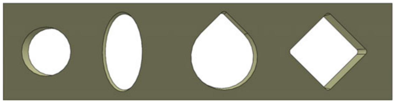 К счастью, небольшие нависающие поверхности можно формировать без таких поддержек: в частности, без поддержек можно обойтись при формировании горизонтальных цилиндрических каналов диаметром до 8 мм. Если такого размера недостаточно, можно создать каналы с увеличенным сечением в виде капли или ромба.