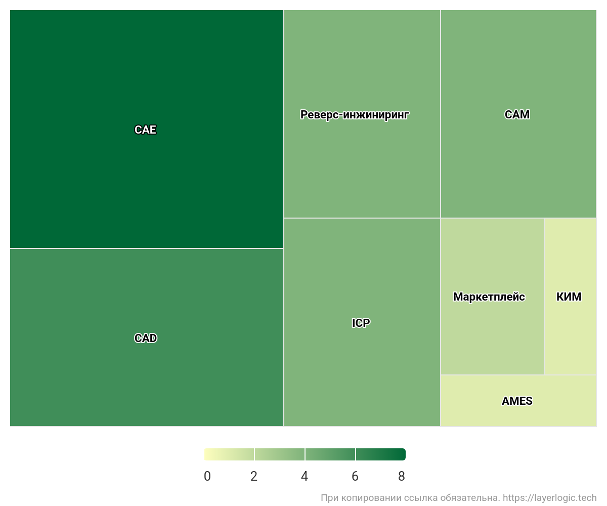 С программным обеспечением у нас, пожалуй, самая незавидная ситуация. В том смысле, что конкуренции среди компаний практически нет. У нас уже представлены интеллектуальные онлайн производственные платформы, САПР полного цикла, включающие в себя некоторые особенности для помощи в создании топологических компонентов, ассистенты, ПО для предварительной деформации, расслоёвщики/слайсеры с подготовкой УП с G-кодами, MES-системы для аддитивного производства, базы данных по материалам.
