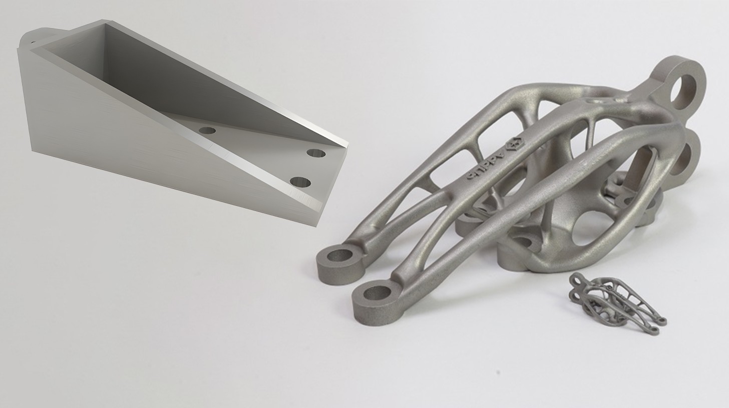 Рис. Оригинальный и оптимизированный кронштейн для фиксации навесного оборудования современного самолета (AddUp Group)