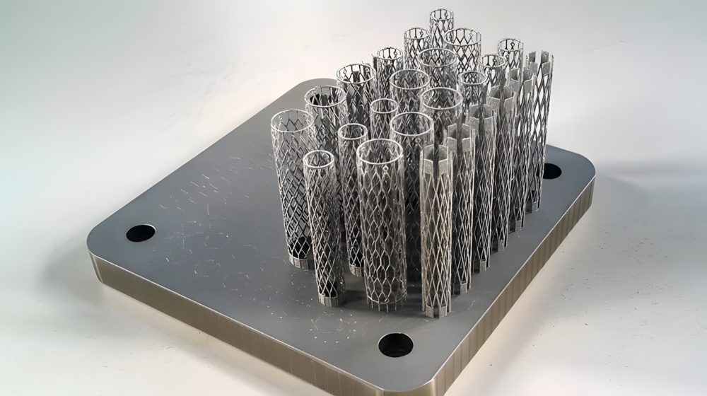 В качестве подробного примера рентабельного производства изделий из нитинола с помощью АП можно привести печать артериальных стентов. Они представляет собой трубку из проволочной сетки, которая действует как каркас, удерживая артерию открытой и восстанавливая нормальный кровоток в области, где образовались бляшки. Такие стенты должны решить две ключевые проблемы: введение во время операции и способность сохранять первоначальную форму в течение длительного времени.